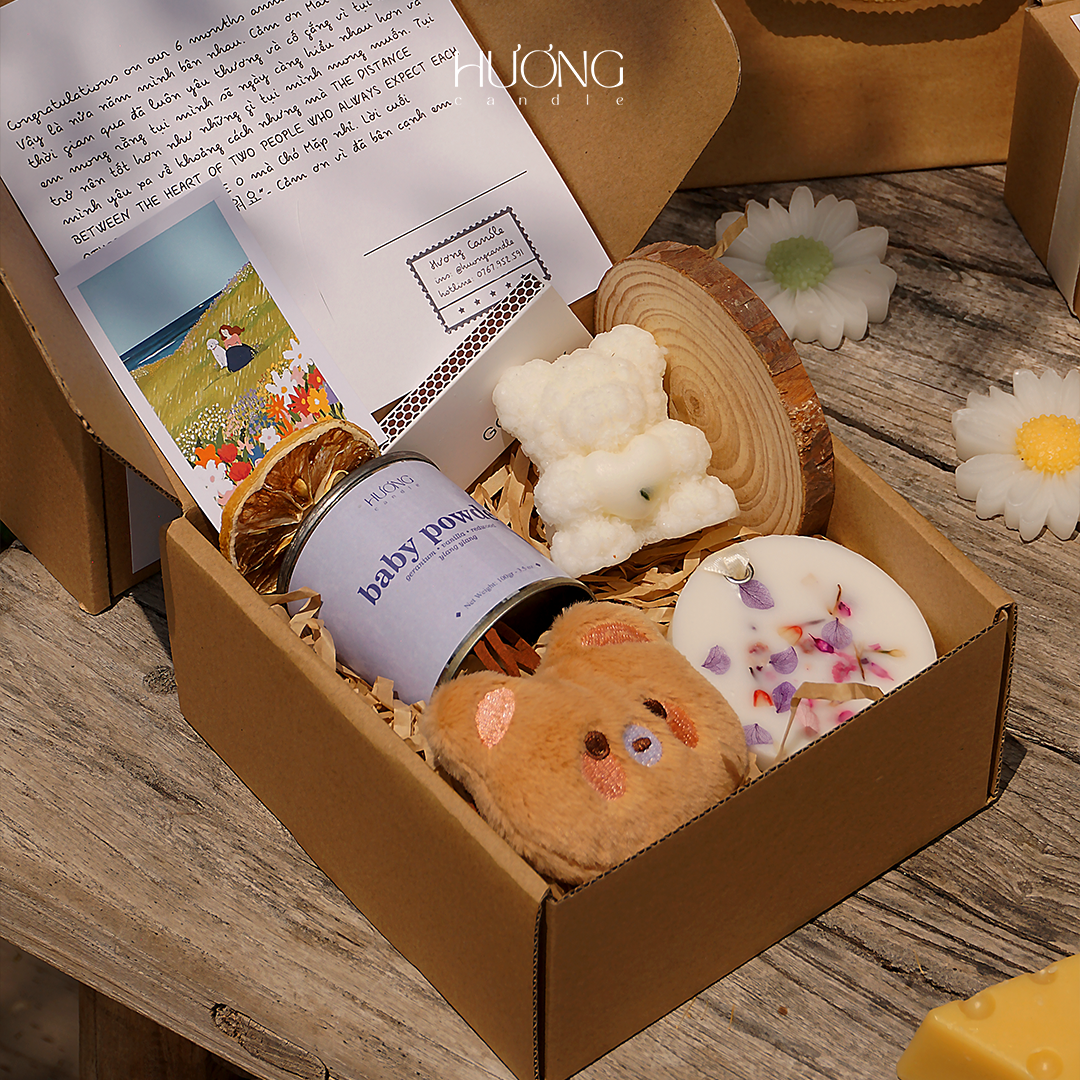 Hương Candle nhận đặt hộp quà số lượng lớn cho Doanh nghiệp, ngày cưới, kỷ niệm, sự kiện,…được cá nhân hoá từng vị khách, tên riêng từng người, làm quà tặng đối tác, khách hàng. Nhắn tin hoặc liên lạc trực tiếp Hương Candle để trao đổi kỹ với chúng mình nhé!