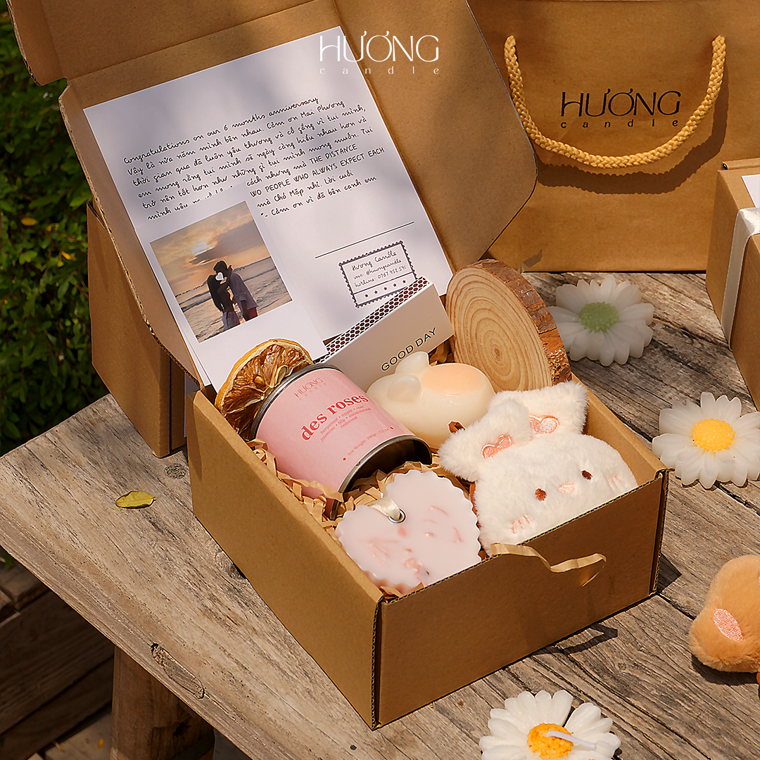 Hương Candle nhận đặt hộp quà số lượng lớn cho Doanh nghiệp, ngày cưới, kỷ niệm, sự kiện,…được cá nhân hoá từng vị khách, tên riêng từng người, làm quà tặng đối tác, khách hàng. Nhắn tin hoặc liên lạc trực tiếp Hương Candle để trao đổi kỹ với chúng mình nhé!